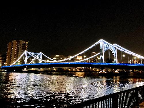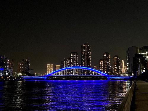 At night, it is illuminated in blue, creating a fantastic sight set against the background of brilliantly lit skyscrapers towering behind it. The cool blue also contrasts pleasingly with the warm red lanterns of the Sumida River’s well known night time yakata-bune (restaurant-houseboats). This is one of the best nocturnal viewing spots along the whole of the Sumida River.
